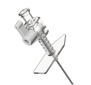 - Integrated stopcock with arrow indicator on handle.