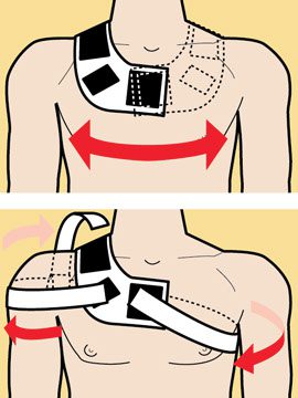 Pocket Pal™ conveniently combines these two principles in a single, unique device. An elastic and Velcro® harness provides moderate, direct incisional compression while decreasing patient upper extremity motion. The compression apron houses a pouch designed to position a cooling gel pack directly over the fresh pocket.