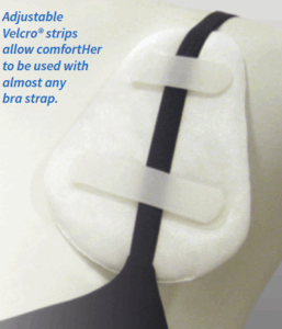 The fully adjustable comfortHer™ cushion provides post-operative comfort to the affected area when wearing a bra.