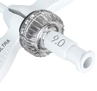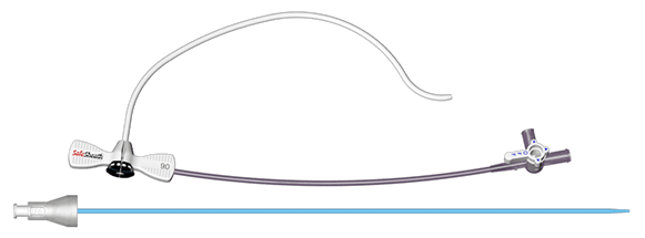 - Convenient sideport with three-way stopcock for infusion and contrast injection