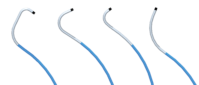 - Unique combination of proximal and distal curves for sub-selective access to angulated lateral vein branches