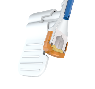 - Easy-to-use slicer mates to the SafeSheath hub to create a stable platform for the cutting hand